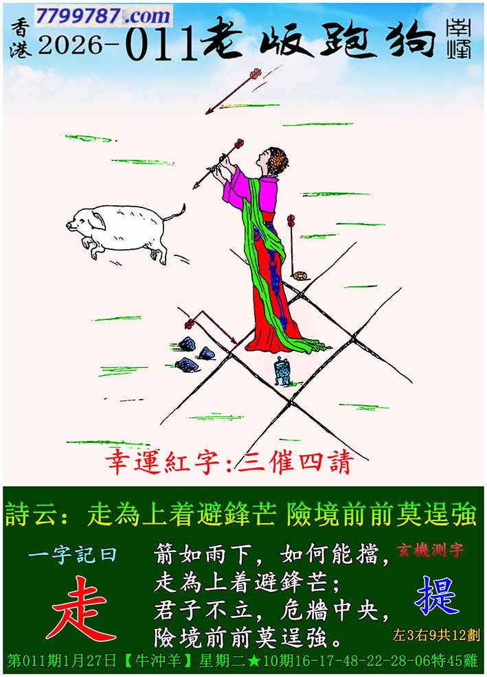| 主题 :011期老版跑狗一字記之曰:【走】 玄機測字:《提》 |