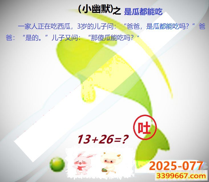 | 主题 :077期:小鱼儿30码期期中+幽默猜测 |