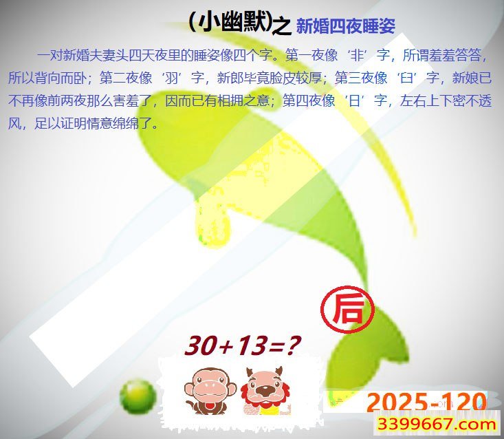 | 主题 :120期:小鱼儿30码期期中+幽默猜测 |