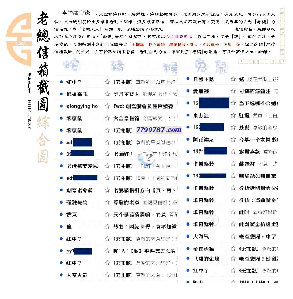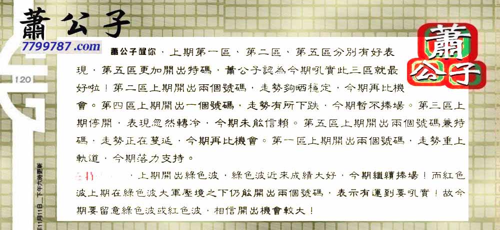 | 主题 :120期:六合皇金句/老总论码/萧公子/林大师/五行夺码/老总信箱截 |