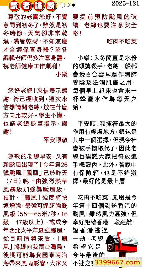 | 主题 :121期:彩民推荐〖貼信讀者論壇〗 |