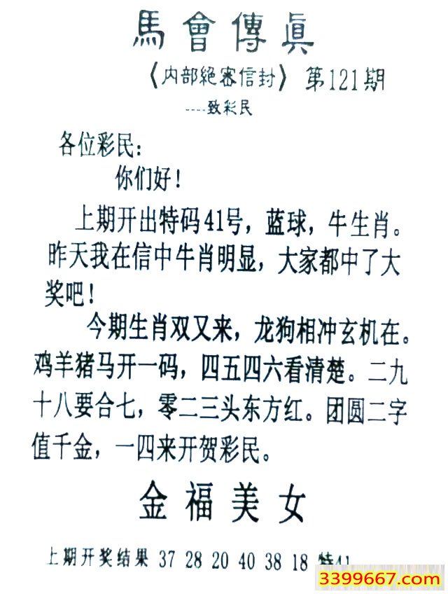 | 主题 :121期:首发推荐:≮馬會傳眞≯→(香港正版) |