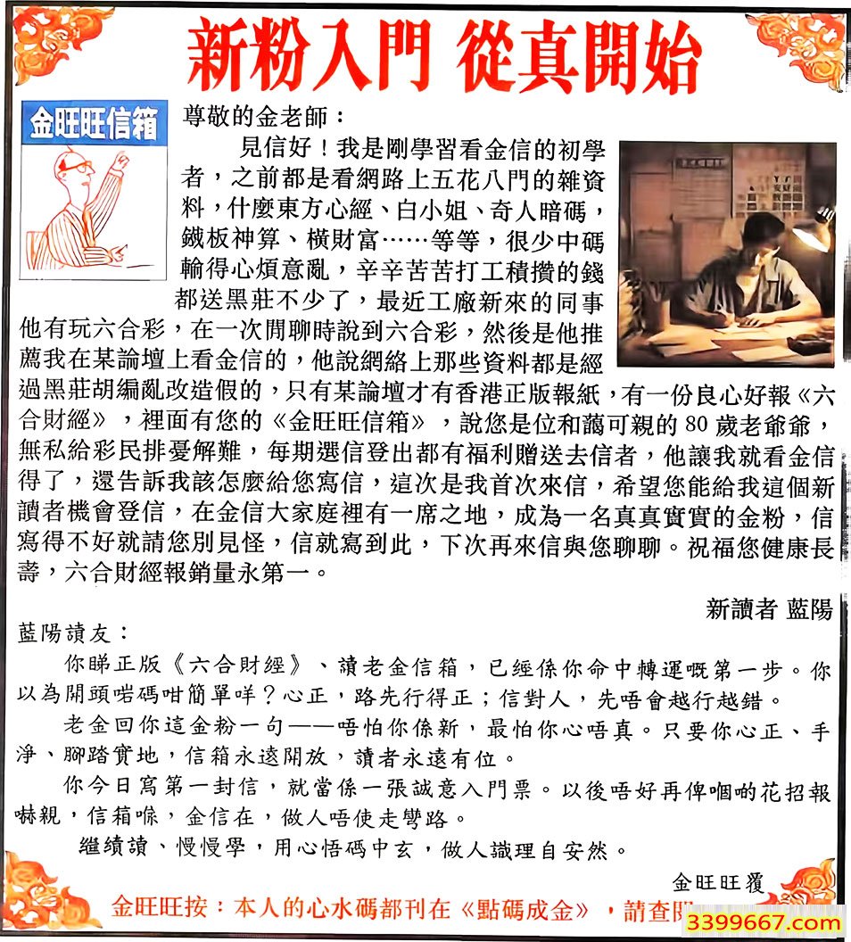 123期:金旺旺信箱彩民推荐→→《新粉入門 從真開始》