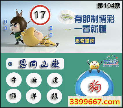 104期正版彩图挂:17 爆:狗 挂牌成语:恩同山岳 挂牌出肖:牛狗虎猴羊龙