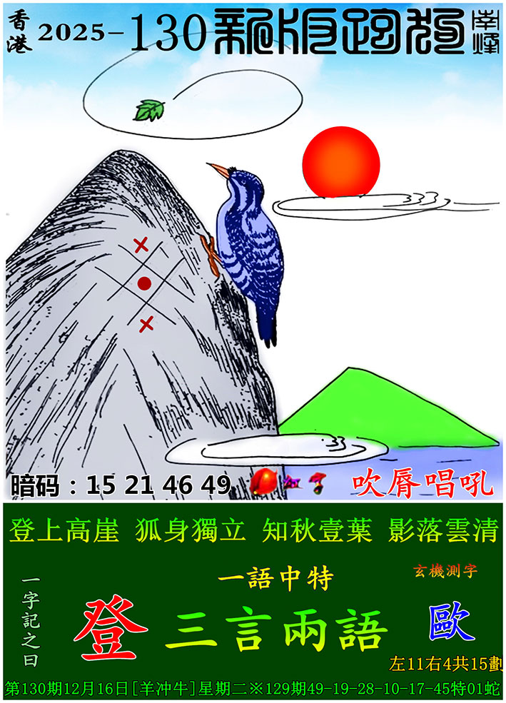 | 主题 :130期:新版跑狗一字記之曰【登】 玄機測字:【歐】 |