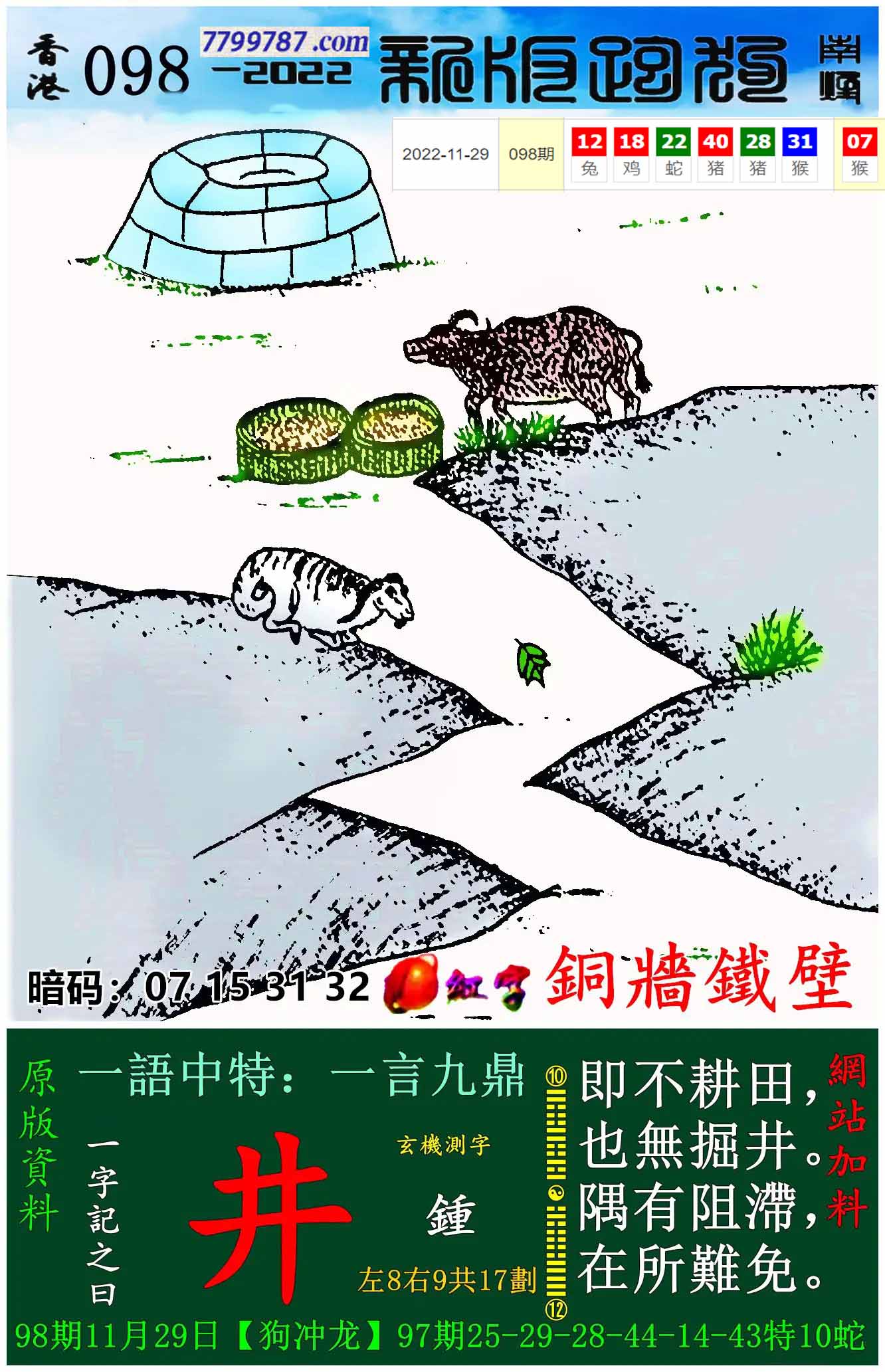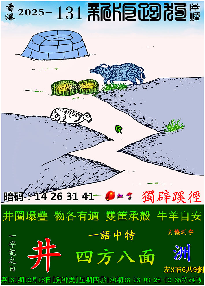 | 主题 :131期:新版跑狗一字記之曰【井】 玄機測字:【洲】 |
