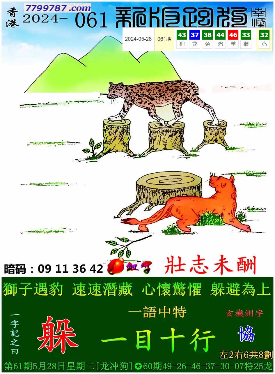 | 主题 :001期:新版跑狗一字記之曰【避】 玄機測字:【朝】 |