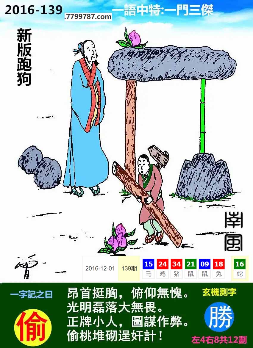 | 主题 :016期:新版跑狗一字記之曰【桃】 玄機測字:【俠】 |